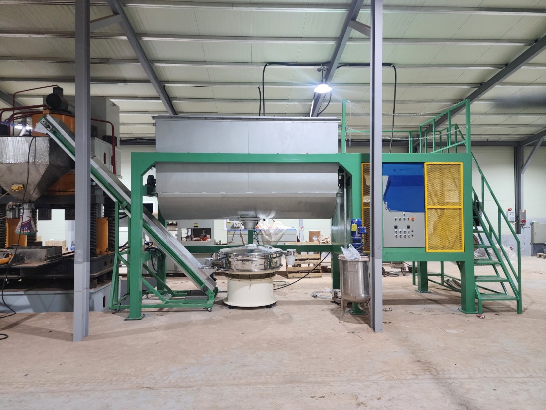 5톤 리본믹서 1200파이진동체 4m아다찌밸트컨베어 자동라인으로연결 / 5톤 리본믹서.진동체.컨베어 자동라인 / 내부 물 분사 설치