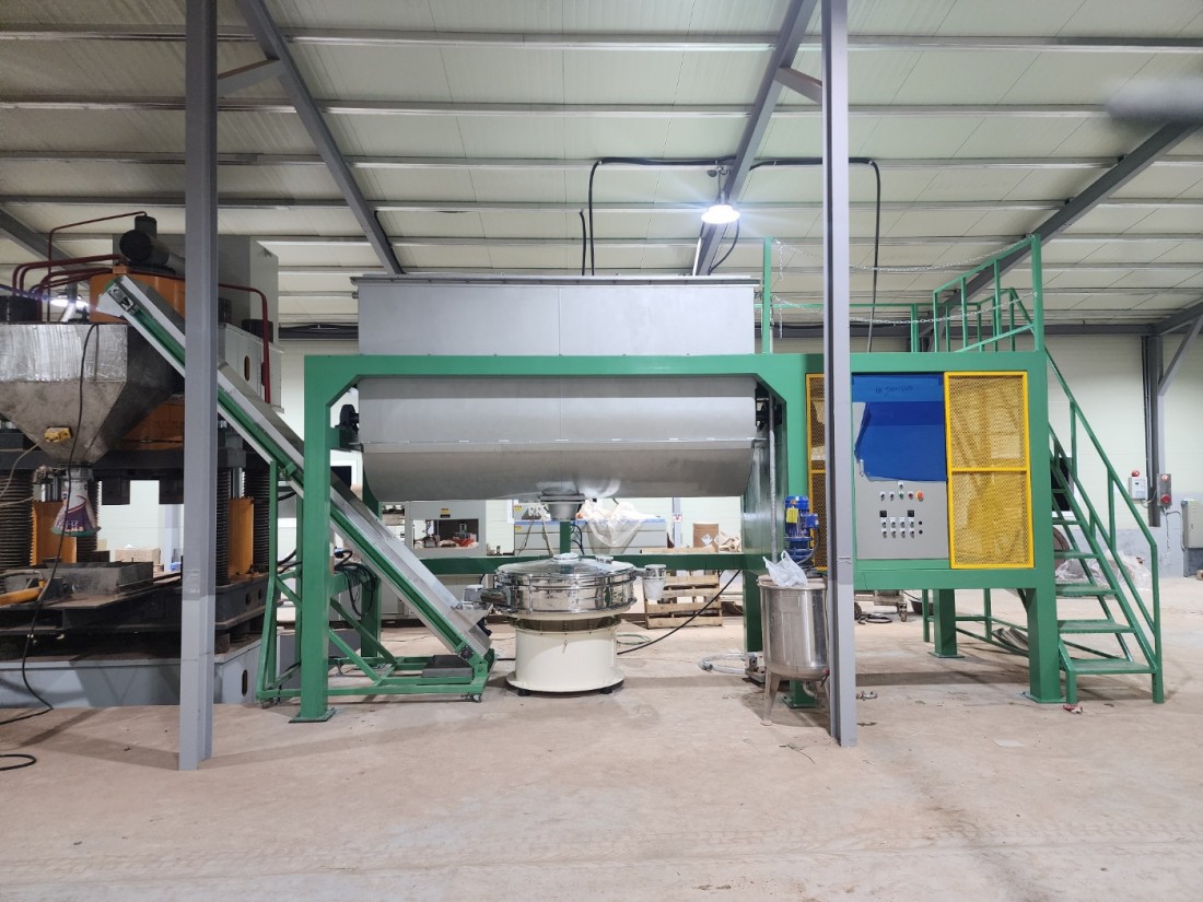 5톤 리본믹서 1200파이진동체 4m아다찌밸트컨베어 자동라인으로연결 / 5톤 리본믹서.진동체.컨베어 자동라인 / 내부 물 분사 설치